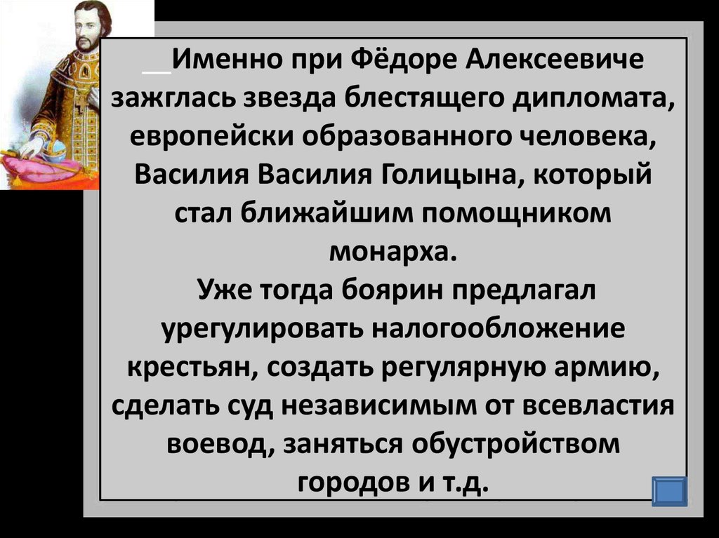 Именно при Фёдоре Алексеевичезажглась звезда блестящего дипломата,