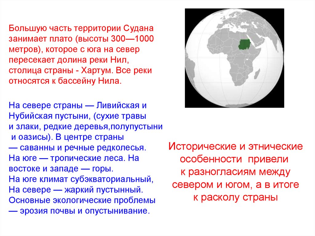 Большую часть территории Суданазанимает плато (высоты 300—1000