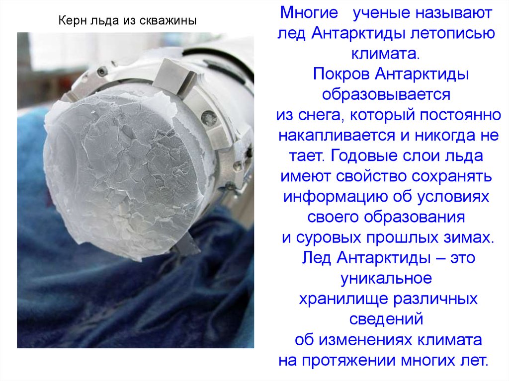 Керн льда из скважиныМногие ученые называют
