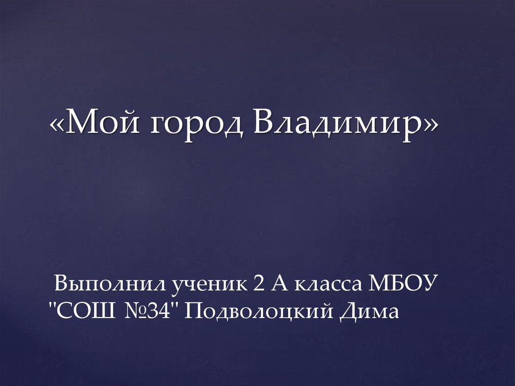 2. «Мой город Владимир» Выполнил ученик 2 А класса МБОУ "СОШ №34" Подволоцкий Дима
