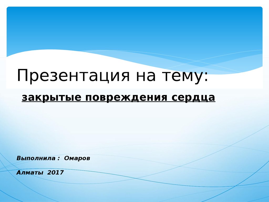 1. Презентация на тему: закрытые повреждения сердца Выполнила : Омаров Алматы 2017