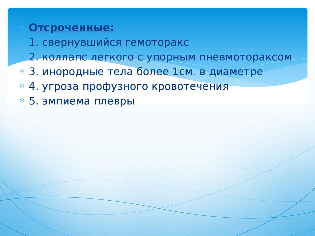 Отсроченные:1. свернувшийся гемоторакс