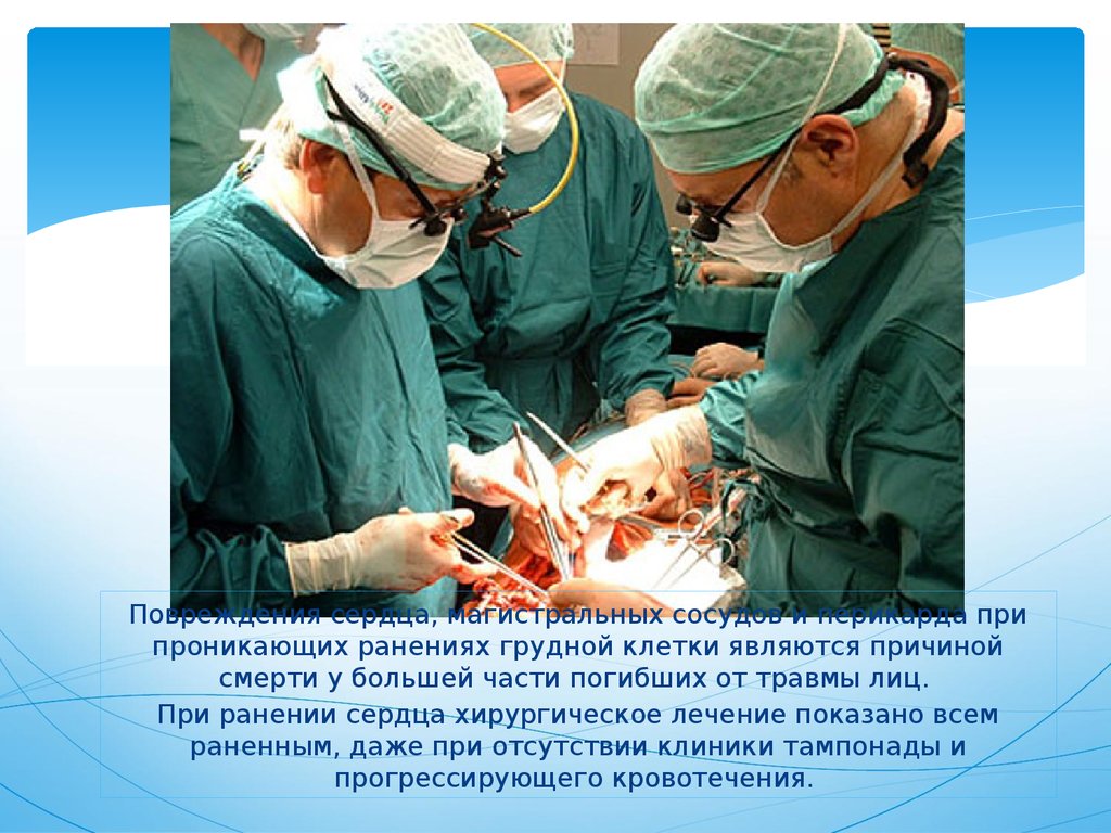 Повреждения сердца, магистральных сосудов и перикарда припроникающих ранениях грудной клетки являются причиной