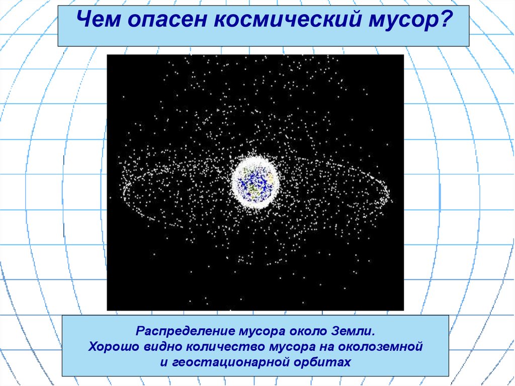 Чем опасен космический мусор?Распределение мусора около Земли.