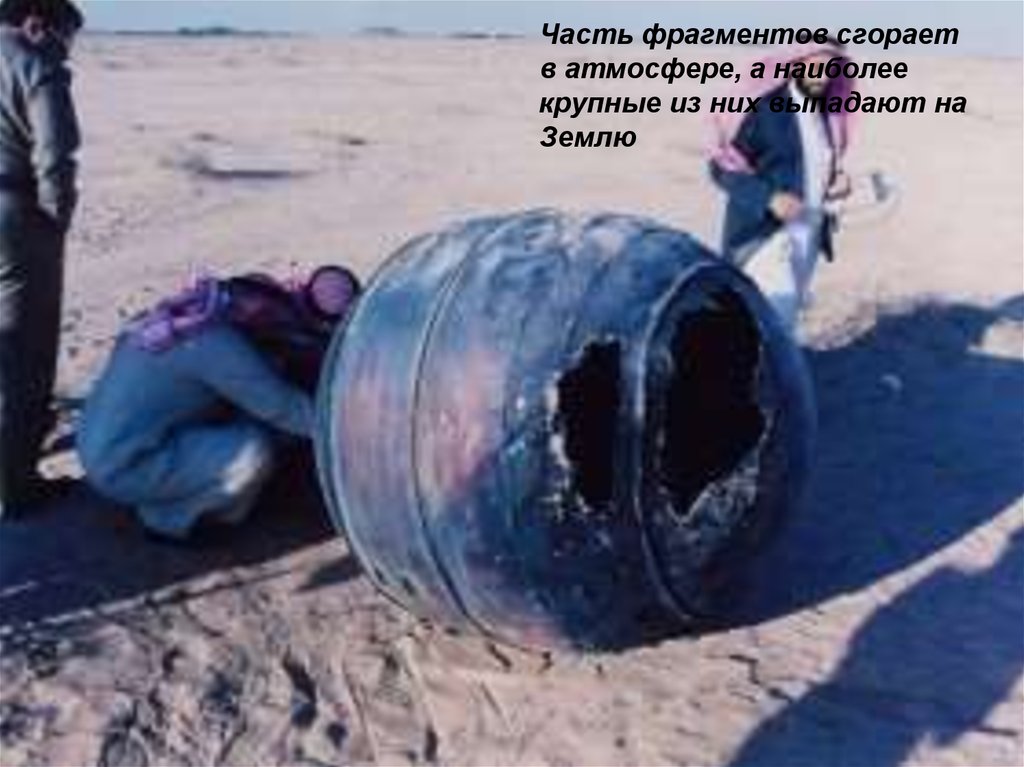 Часть фрагментов сгораетв атмосфере, а наиболее