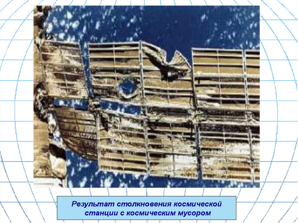 Результат столкновения космическойстанции с космическим мусором