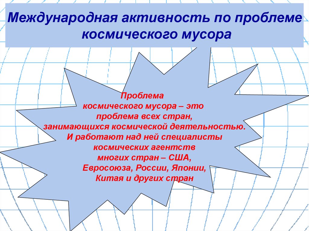Международная активность по проблемекосмического мусора