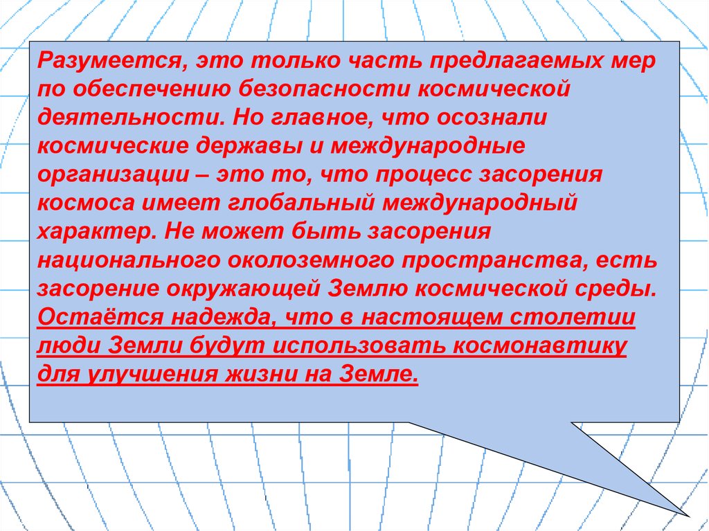 Разумеется, это только часть предлагаемых мерпо обеспечению безопасности космической