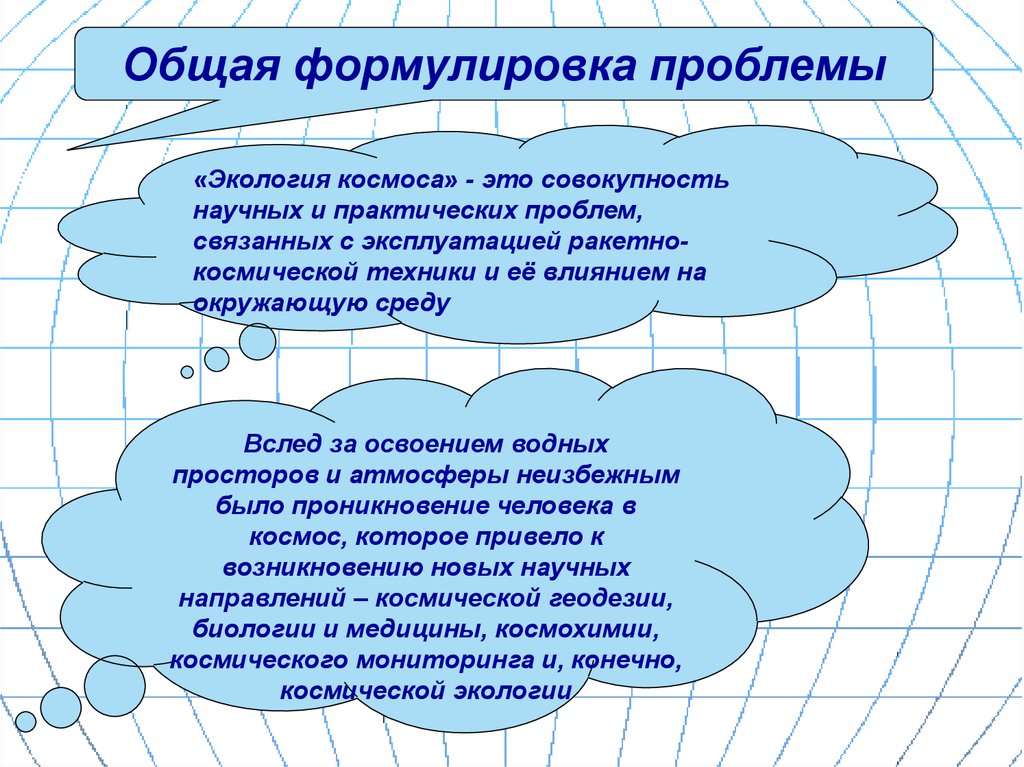Общая формулировка проблемы«Экология космоса» - это совокупность