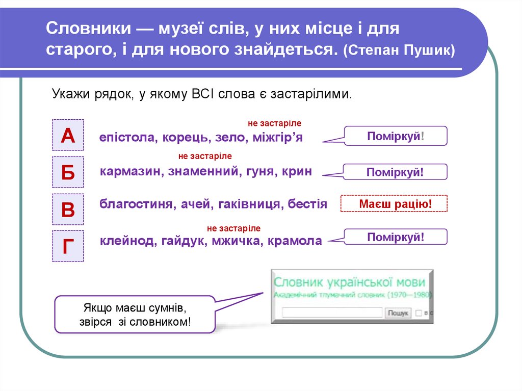 Словники — музеї слів, у них місце і длястарого, і для нового знайдеться. (Степан Пушик)
