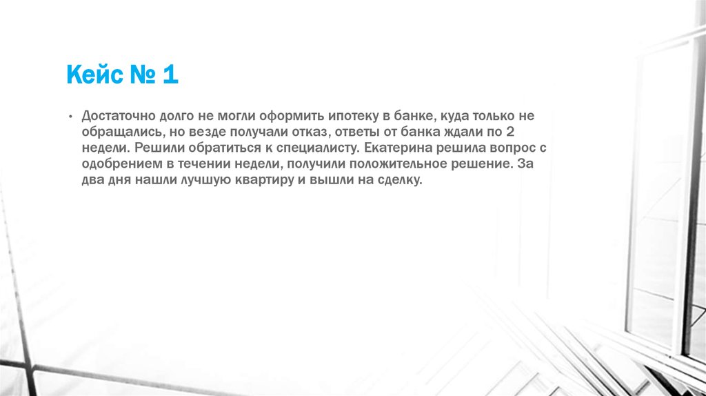 Кейс № 1Достаточно долго не могли оформить ипотеку в банке, куда только не