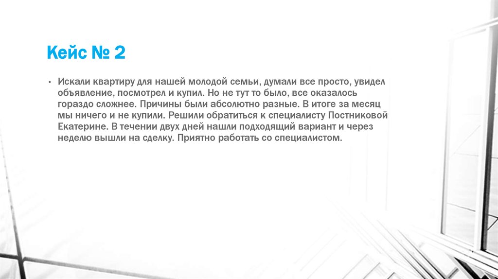 Кейс № 2Искали квартиру для нашей молодой семьи, думали все просто, увидел