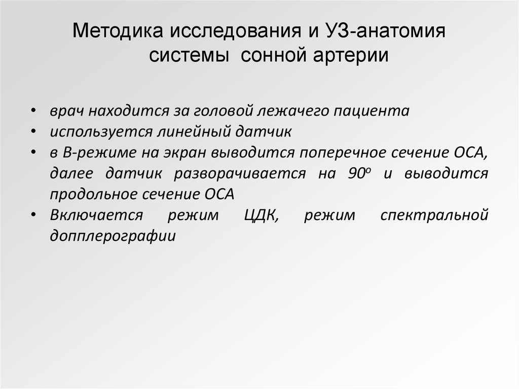 Методика исследования и УЗ-анатомиясистемы сонной артерии