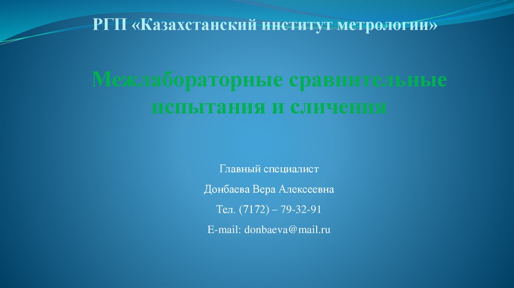 РГП «Казахстанский институт метрологии»Межлабораторные сравнительные