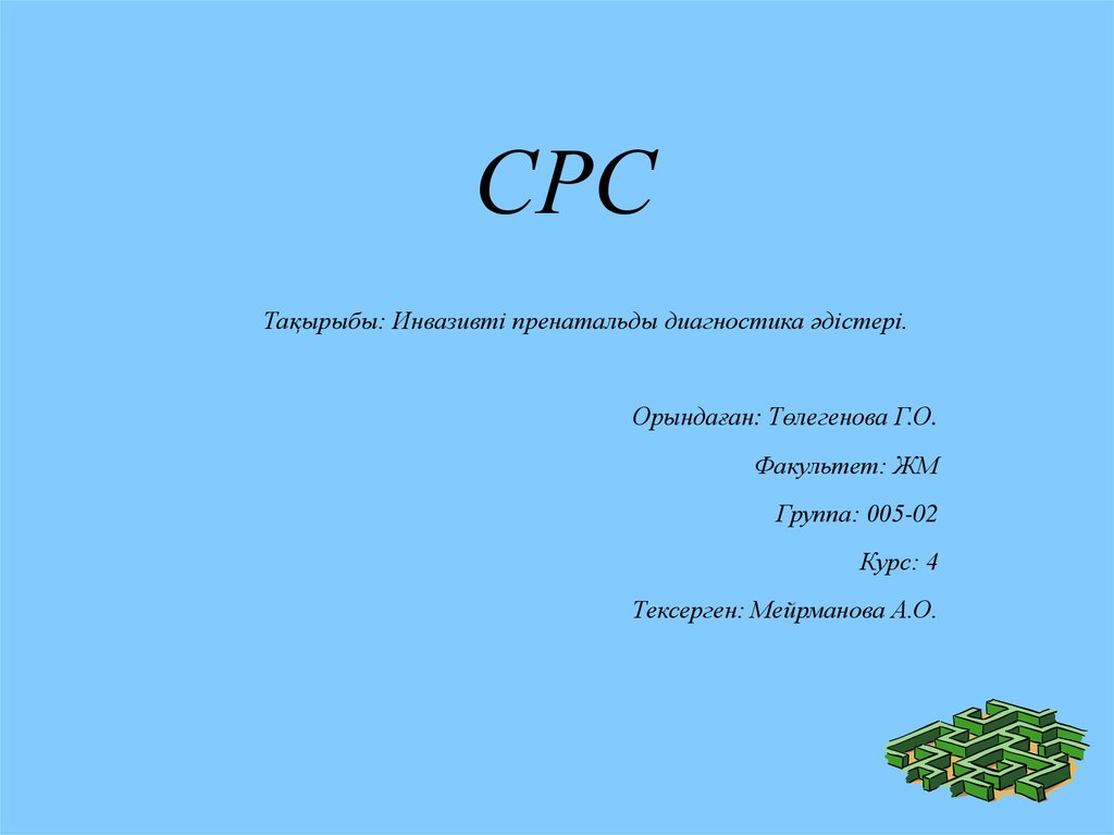 СРСТақырыбы: Инвазивті пренатальды диагностика әдістері.