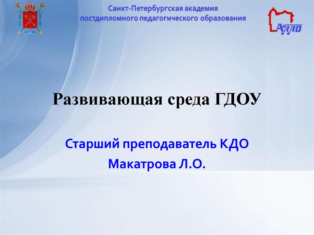 Развивающая среда ГДОУСтарший преподаватель КДО