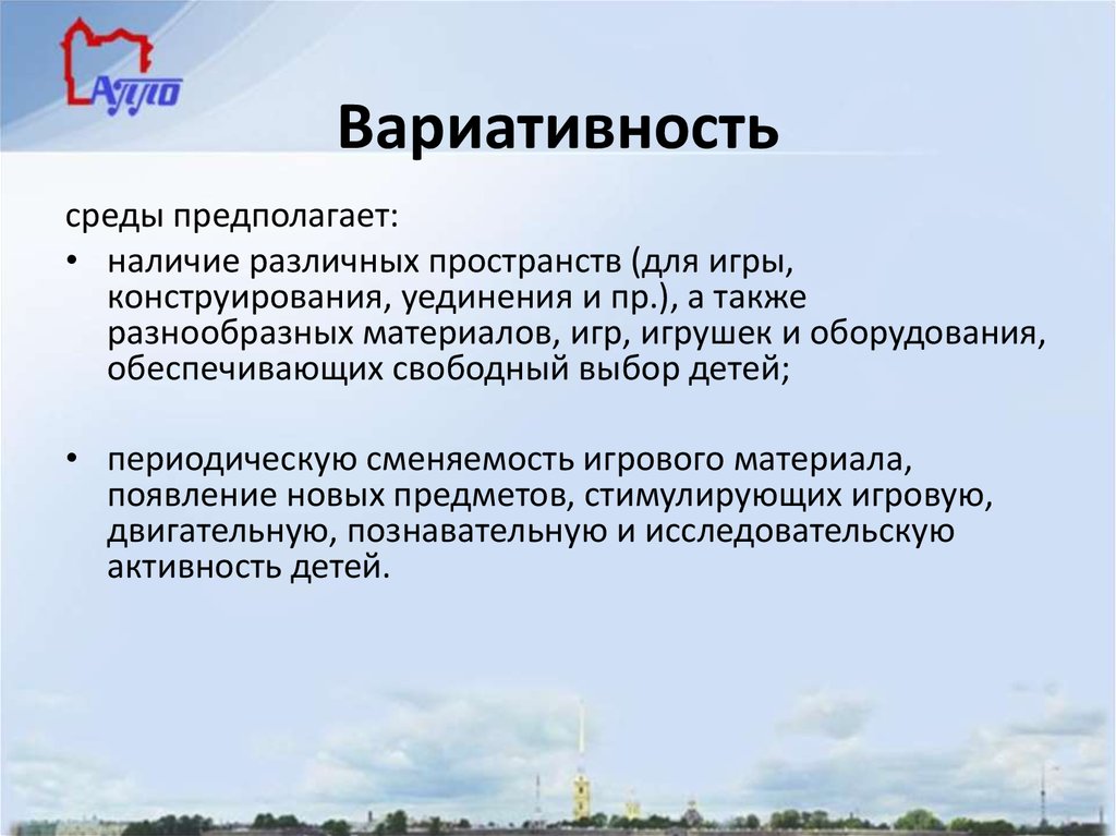 При создании предметной среды необходиморуководствоваться следующими принципами,