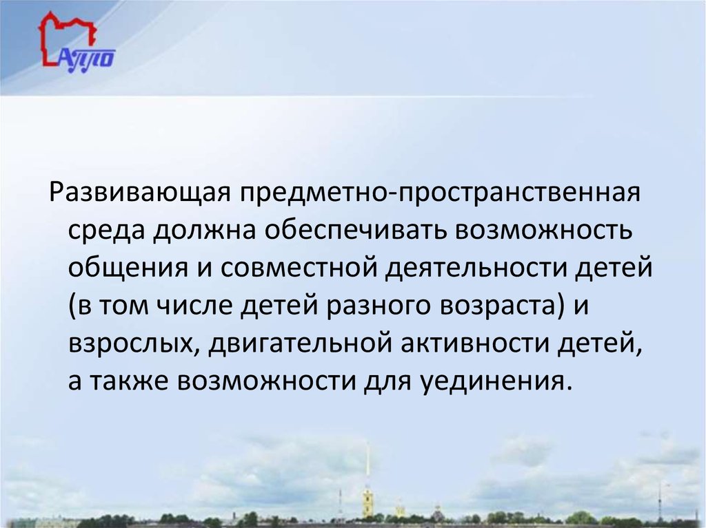 Развивающая предметно-пространственнаясреда должна обеспечивать возможность