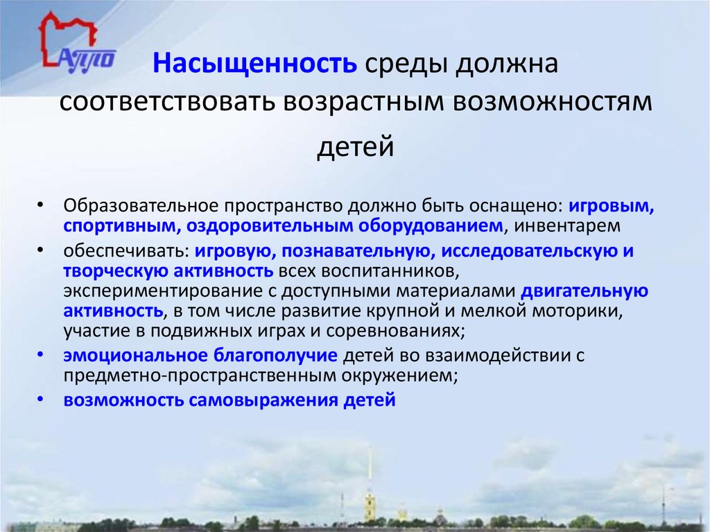 Насыщенность среды должнасоответствовать возрастным возможностям