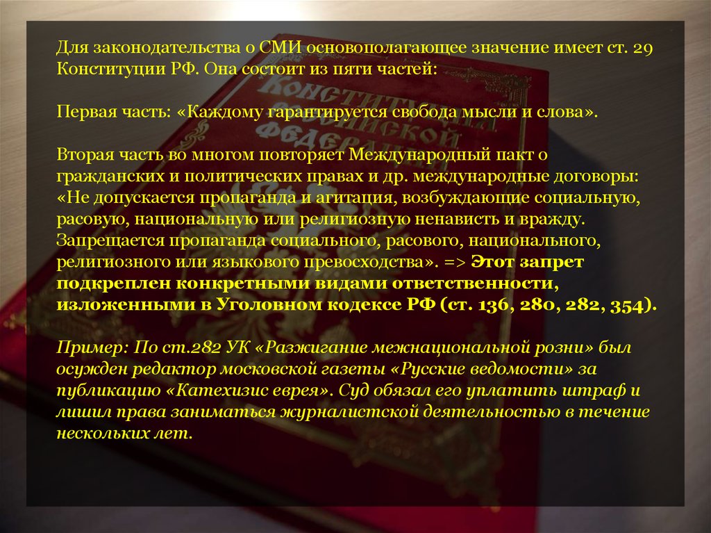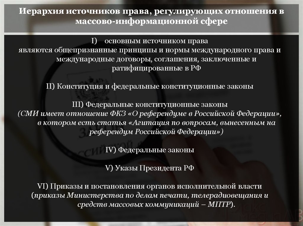 сведений через СМИ, а не о праве СМИ заниматься чем