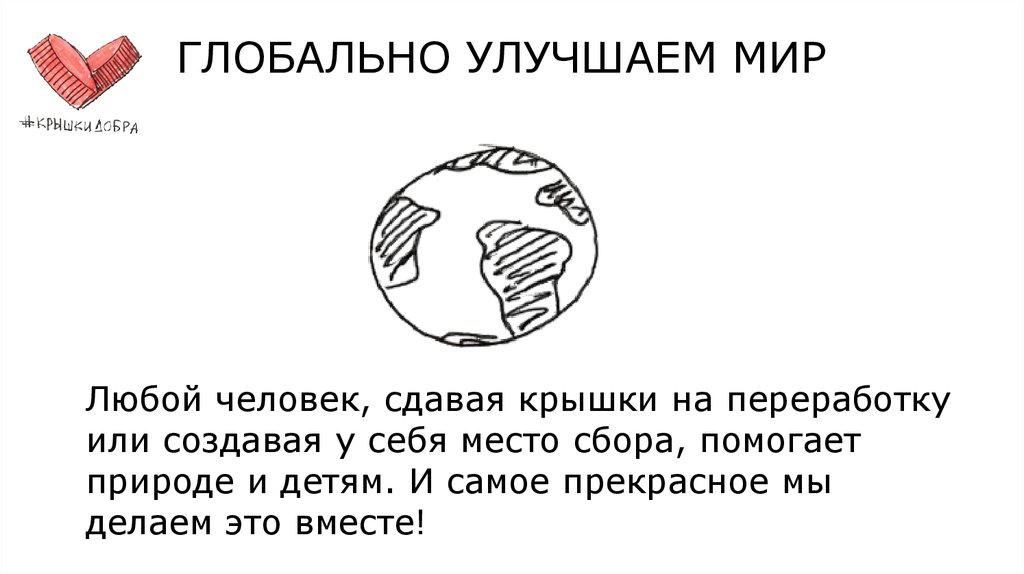 ГЛОБАЛЬНО УЛУЧШАЕМ МИРЛюбой человек, сдавая крышки на переработку