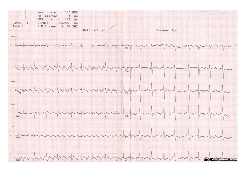 Полная блокада левой ножки пучка Гиса(деформированные широкие (более 0,12с) комплексы