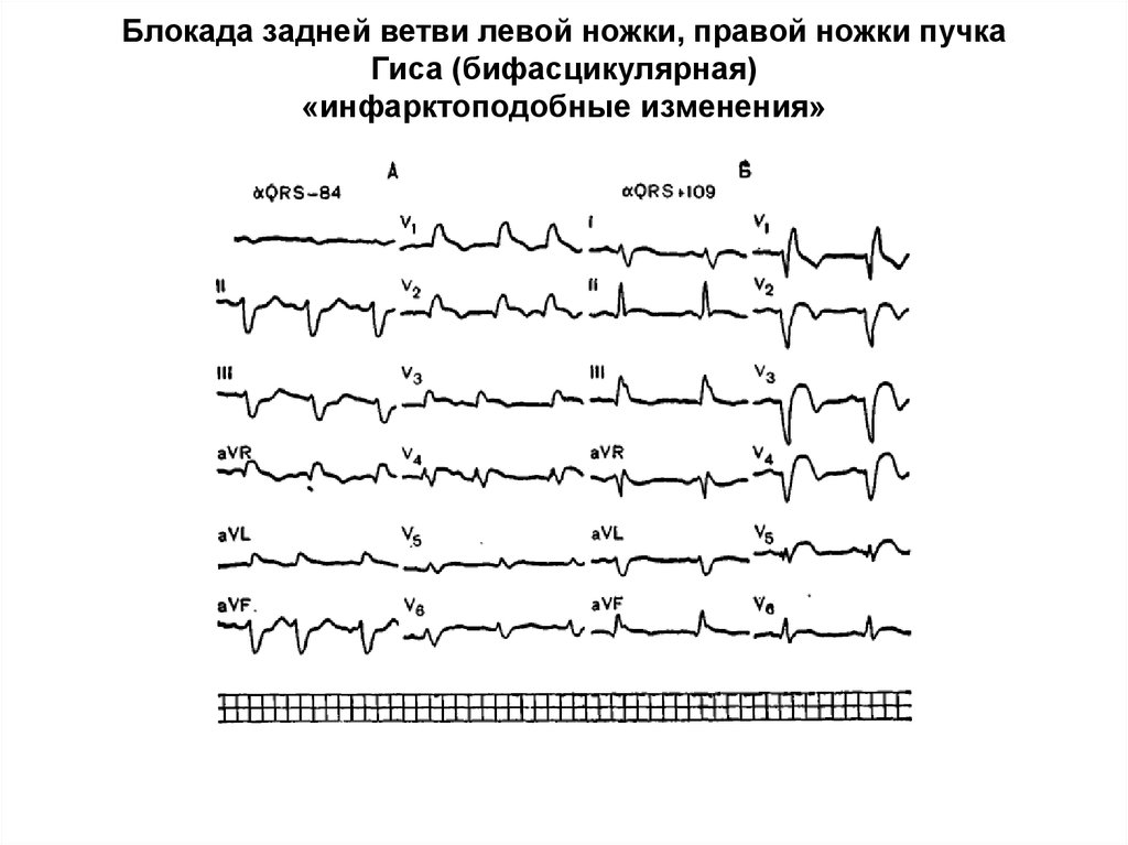 Блокада задней ветви левой ножки, правой ножки пучкаГиса (бифасцикулярная)