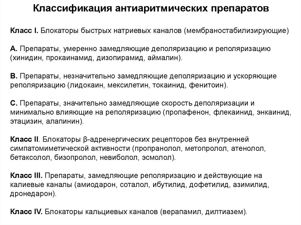 препараты Ic класса: этацизин (0,025-0,05 г 3-4 раза в сутки), пропафенон (0,15 г 3