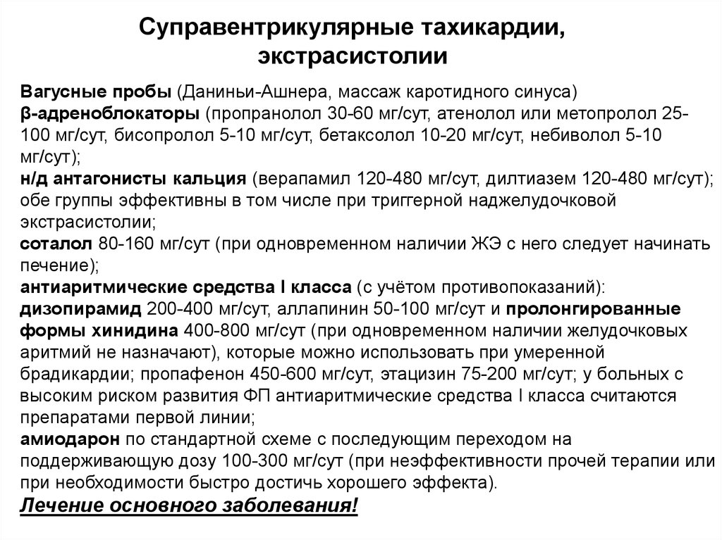 1400-1200 мг). После пароксизма тахикардии показан прием противоаритмического
