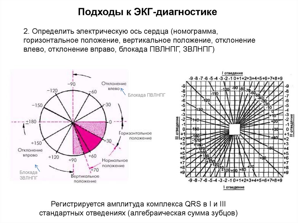 Подходы к ЭКГ-диагностике2. Определить электрическую ось сердца (номограмма,