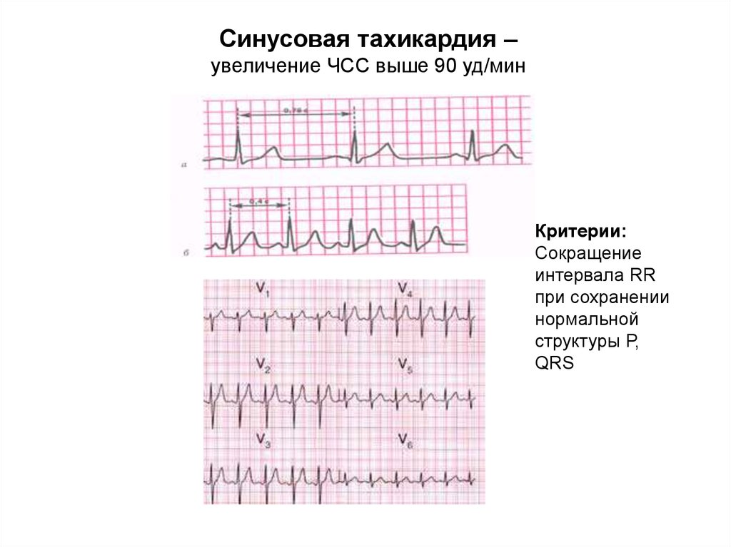Синусовая тахикардия –увеличение ЧСС выше 90 уд/мин