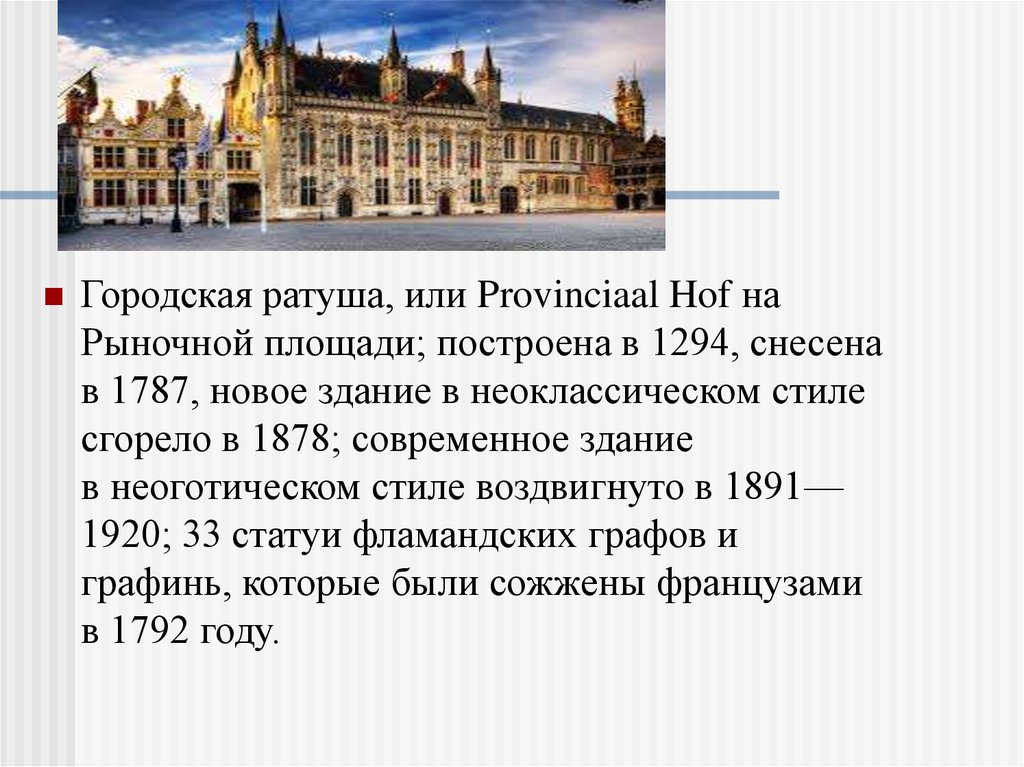 Городская ратуша, или Provinciaal Hof наРыночной площади; построена в 1294, снесена