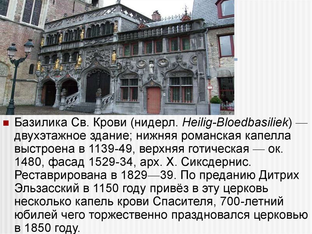 Базилика Св. Крови (нидерл. Heilig-Bloedbasiliek) —двухэтажное здание; нижняя романская капелла