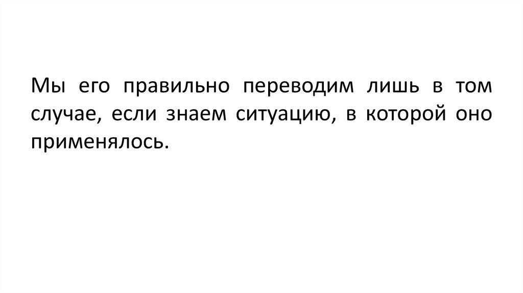 Мы его правильно переводим лишь в томслучае, если знаем ситуацию, в которой оно