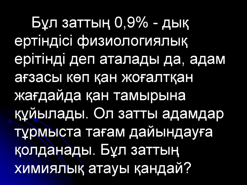 Бұл заттың 0,9% - дықертіндісі физиологиялық