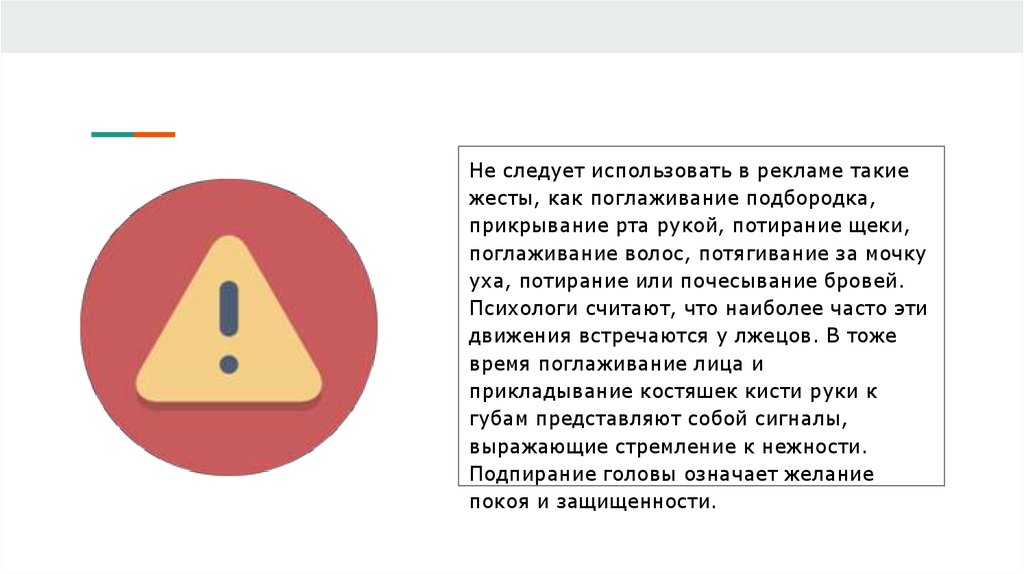 Не следует использовать в рекламе такиежесты, как поглаживание подбородка,