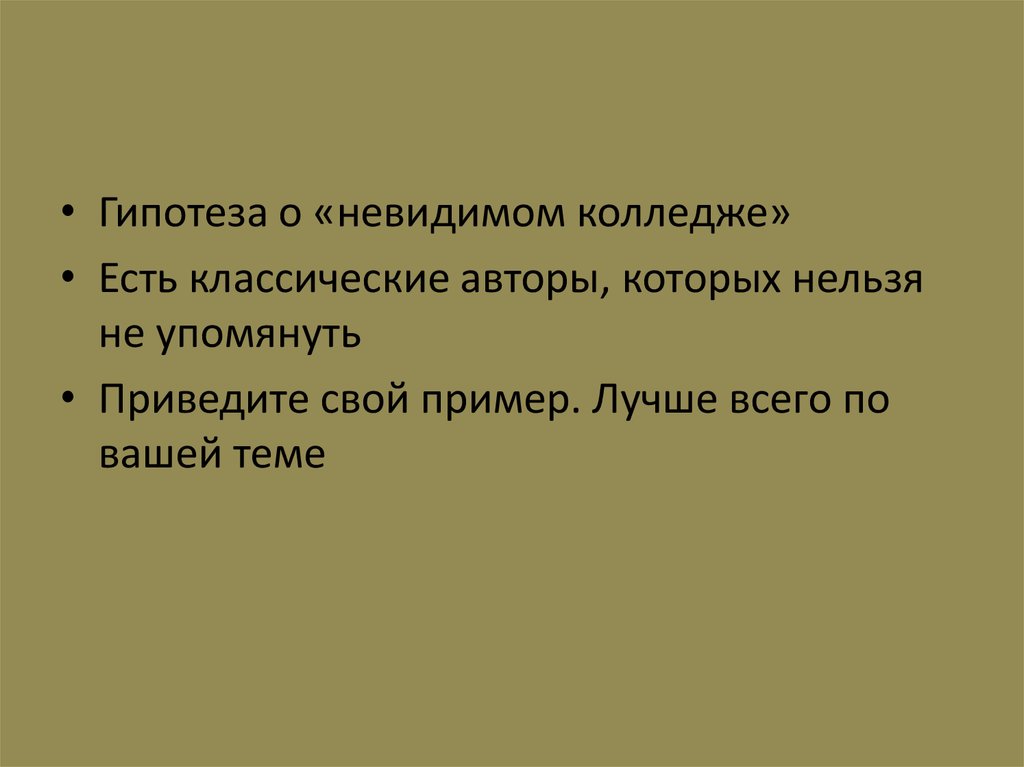 • Гипотеза о «невидимом колледже»• Есть классические авторы, которых нельзя
