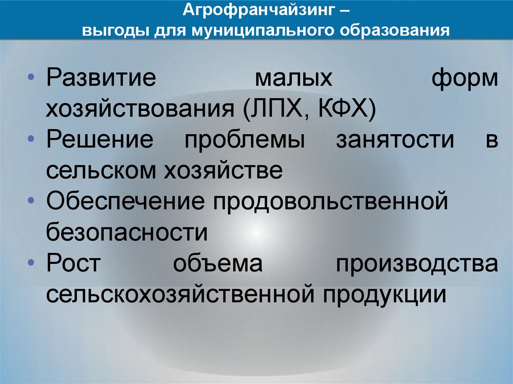Финансовая поддержка агрофранчайзинга в рамках программсамообеспечения и самозанятости