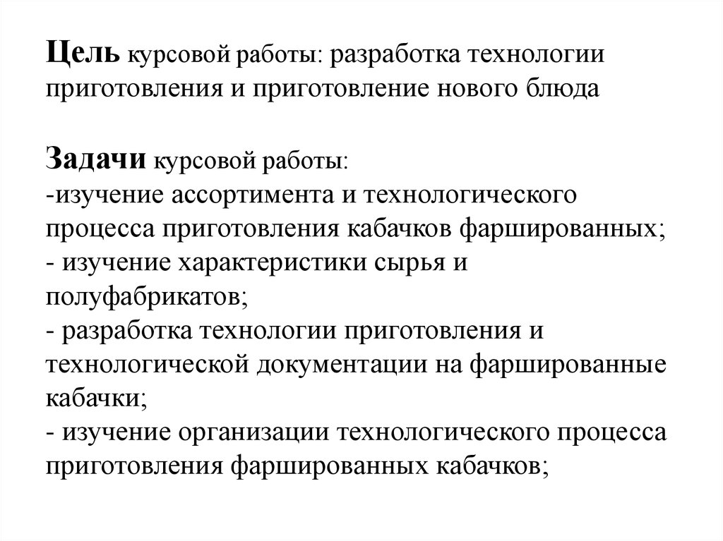 Цель курсовой работы: разработка технологииприготовления и приготовление нового блюда