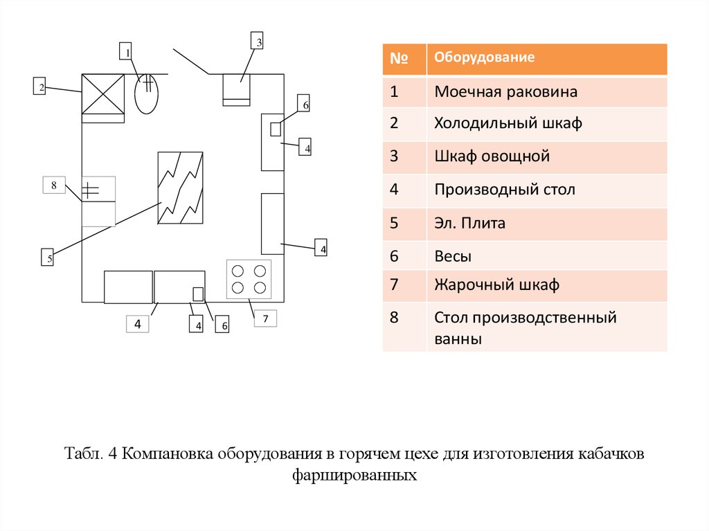 Табл. 4 Компановка оборудования в горячем цехе для изготовления кабачков