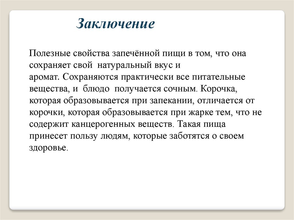 ЗаключениеПолезные свойства запечённой пищи в том, что она
