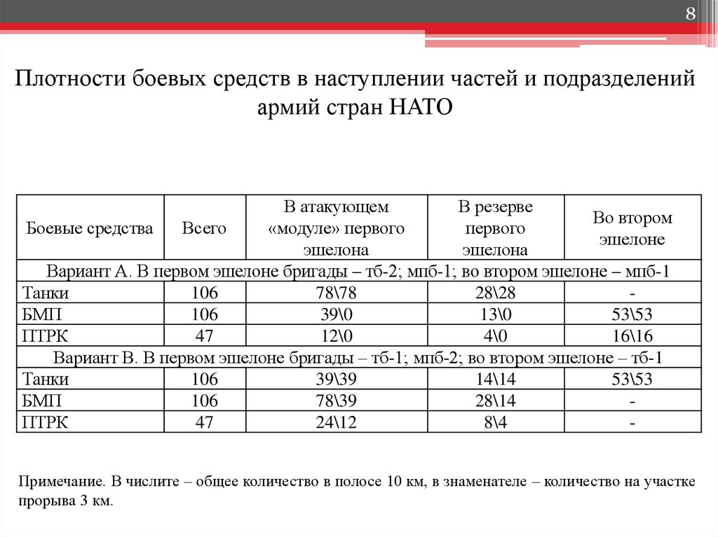 8Плотности боевых средств в наступлении частей и подразделений