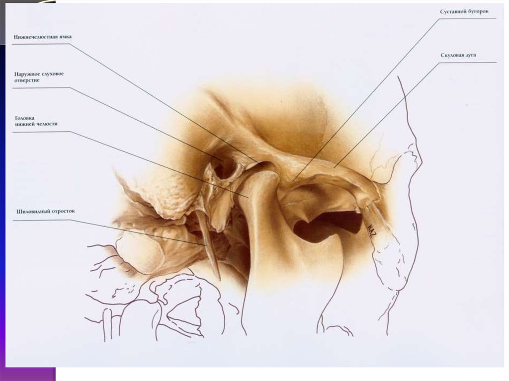 1.суставной бугорок2.верхняя суставная щель