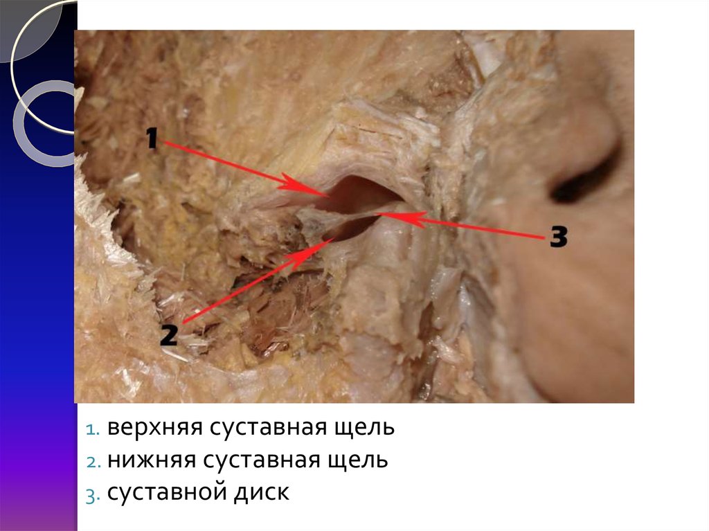 1. верхняя суставная щель2. нижняя суставная щель