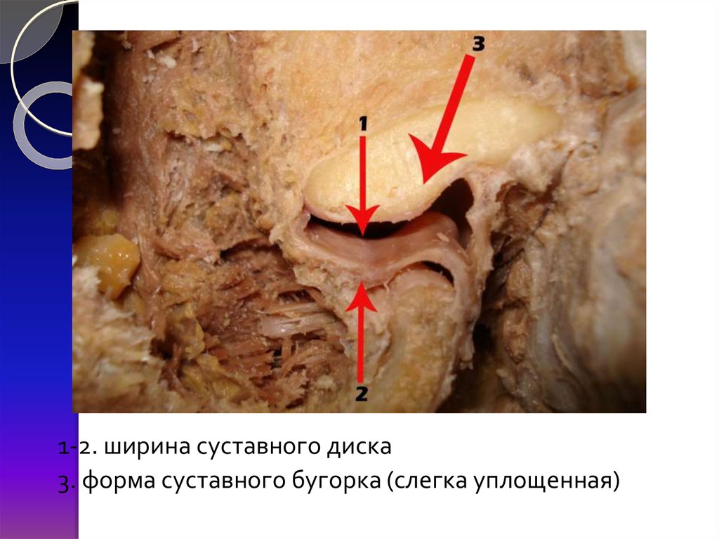 1-2. ширина суставного диска3. форма суставного бугорка (слегка уплощенная)