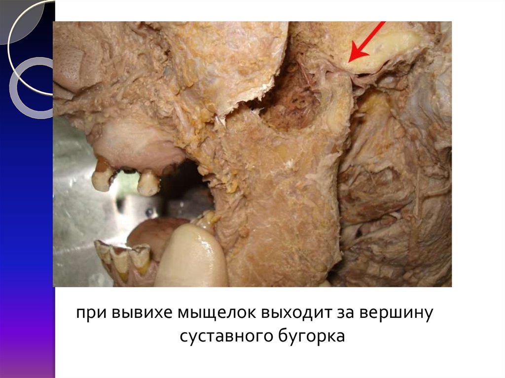 при вывихе мыщелок выходит за вершинусуставного бугорка