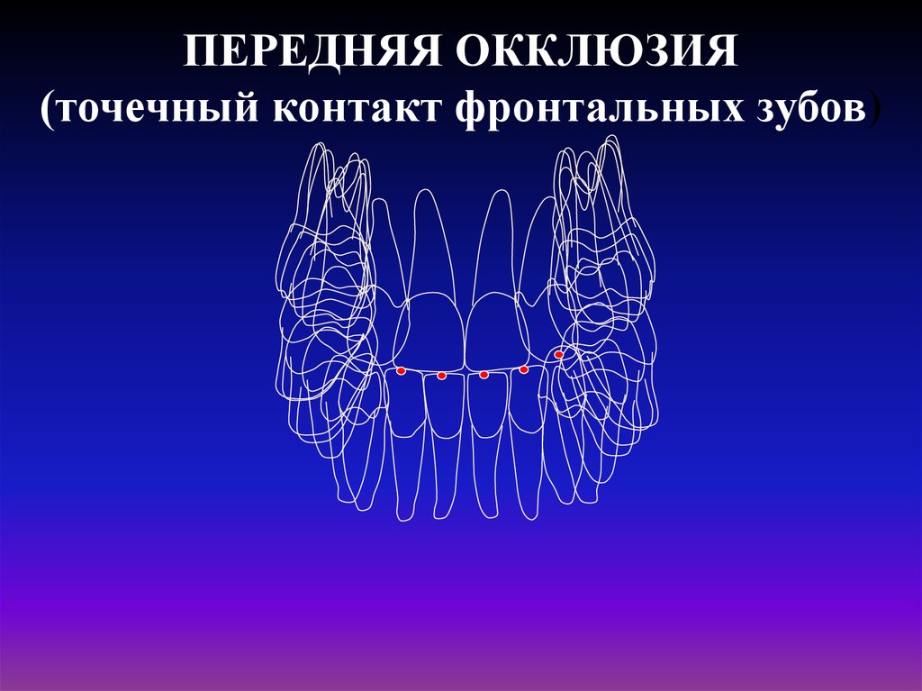 ПЕРЕДНЯЯ ОККЛЮЗИЯ(точечный контакт фронтальных зубов)