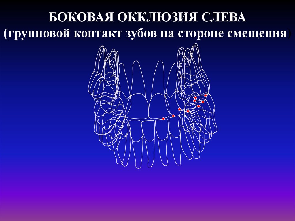 БОКОВАЯ ОККЛЮЗИЯ СЛЕВА(групповой контакт зубов на стороне смещения)