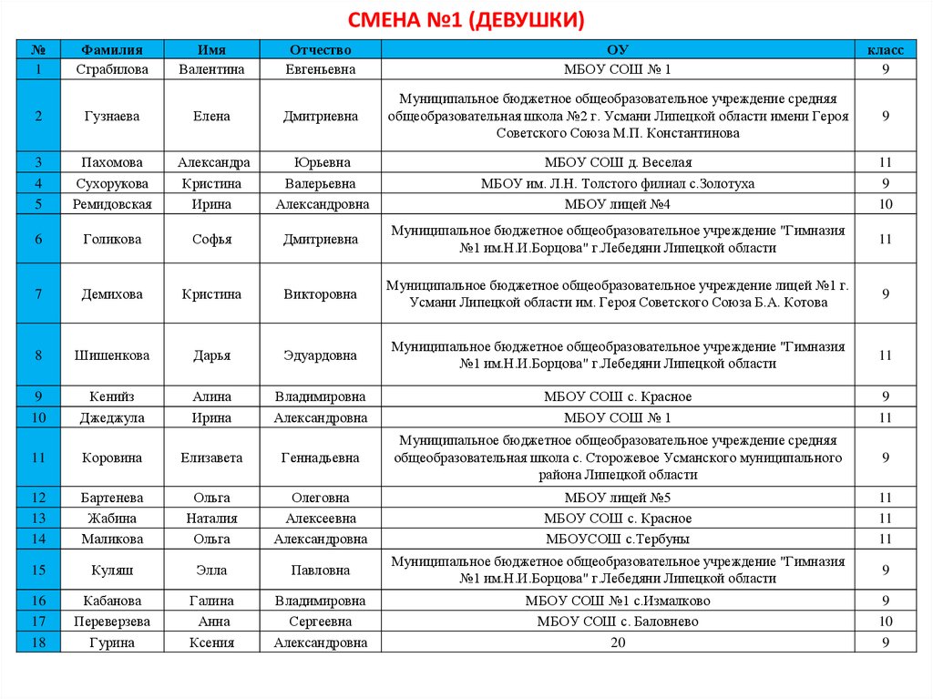 Смена №1 (девушки)