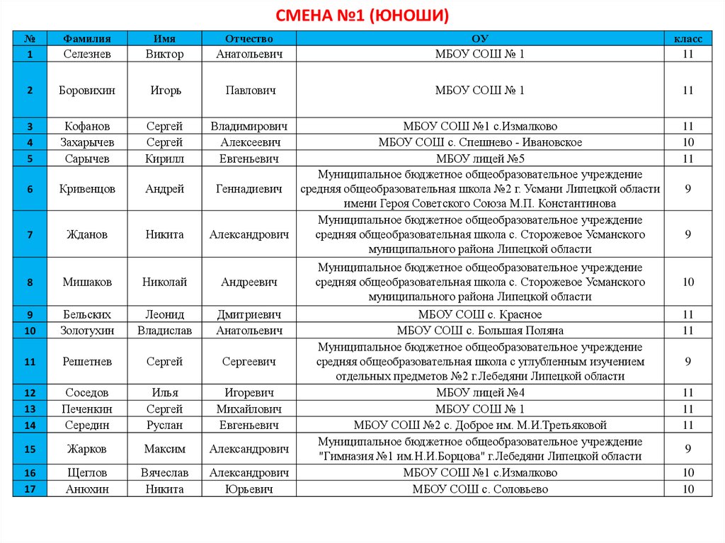 Смена №1 (юноши)